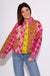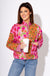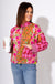 Discover the unique charm of this quilted jacket featuring a striking split design. One half showcases soft shades of pink with delicate floral patterns, while the opposite side dazzles with vibrant peach hues and bold floral accents. Perfect for standing out in style, this jacket combines cozy warmth with eye-catching elegance, making it an ideal choice for elevating any outfit. Embrace your bold side with this beautiful, fashion-forward piece.
