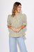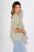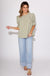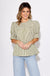 Sharp lines meet soft details in this soft olive stripe pattern pullover top. With structured short sleeves, a round neckline, and button-front closure, it blends crisp tailoring with feminine flair.