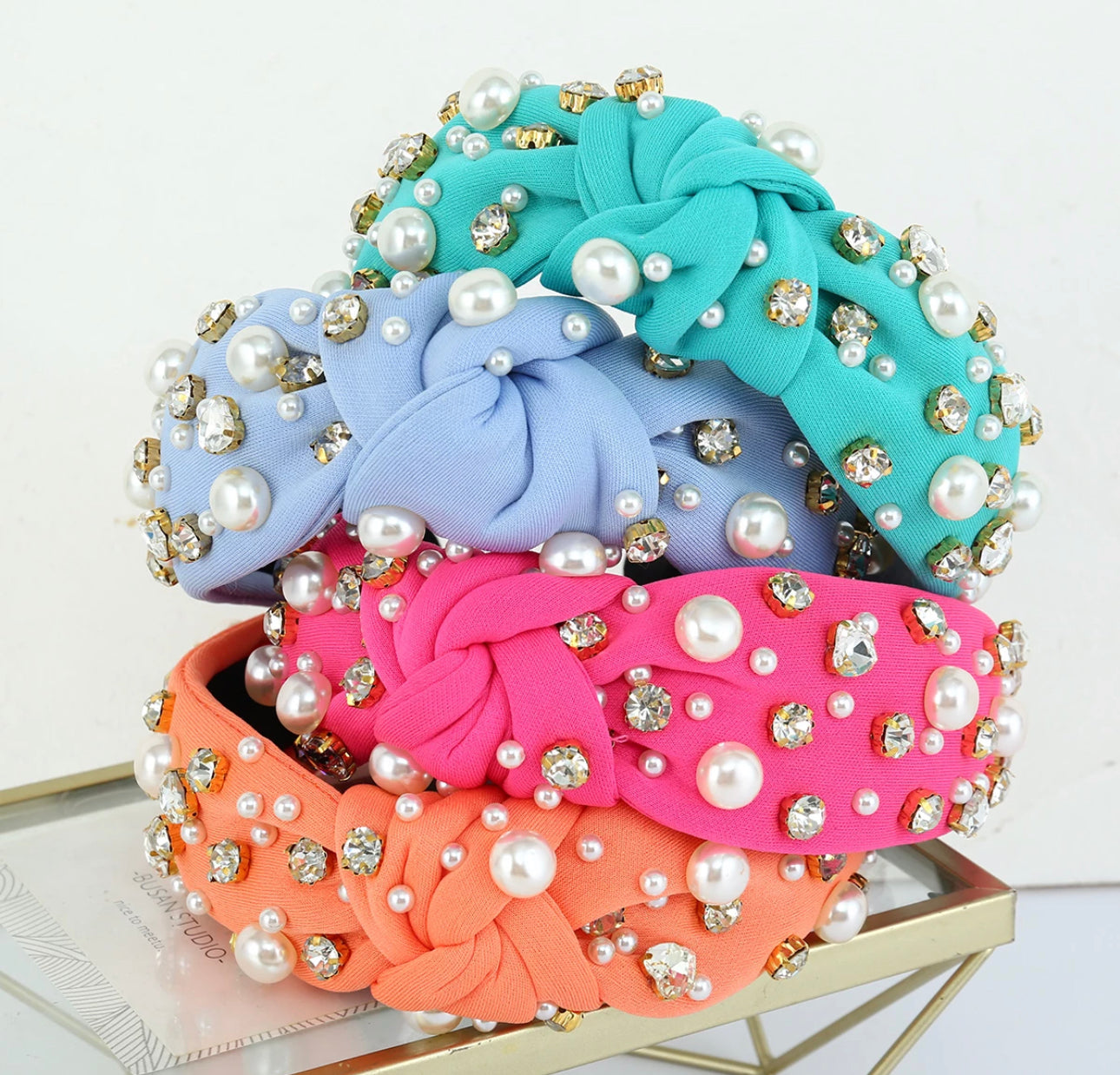 These headbands are GORGEOUS! Embellished with pearls, rhinestones and heart shaped rhinestones.