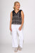 Delicate details take center stage in this feminine sleeveless top, featuring a black backdrop adorned with white floral embroidery. The exposed stitch accents and V-neckline offer a handcrafted feel, while bow-tied shoulder straps add a soft, whimsical touch. Whether dressed up with trousers or paired with casual denim, it’s a standout piece with timeless charm.