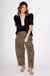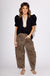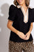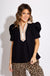 Elegant meets effortless in this standout pullover top featuring structured pleated puff sleeves and a caftan-inspired high neck band collar. The tan scalloped edge adds a soft, feminine contrast against the sleek black fabric, while the tailored silhouette keeps it polished. Perfect for tucking into trousers or dressing up denim