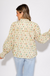 Romantic and timeless, this long sleeve puff top is blooming with delicate charm. Set against an ecru background, the dainty multicolor floral print adds a feminine touch, while ruffle band accents at the collar and cuffs give it that extra flutter. Lightweight and unlined, it’s perfect for layering or letting the details shine on their own. A sweet statement for fall days, teacher style, or casual-chic weekends.
