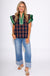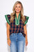 Add a playful touch to your wardrobe with this navy plaid flutter sleeve top. Featuring scallop trim accents and a contrast V-neck with a caftan-inspired band, this lightweight woven top is airy and easy to style. Perfect for pairing with jeans or skirts, it brings effortless charm to any casual or semi-dressy look.