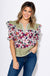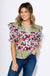 Elevate your wardrobe with the Shoulder Pop Multi-Print Top in Plum. This stylish short puff sleeve top features a round split neckline and a charming ruffle accent over the shoulder, adding a playful touch to your look. The vibrant multi-print design brings a fresh, eye-catching appeal, perfect for making a statement wherever you go. Comfortable and chic, it’s an ideal choice for both casual outings and dressier occasions.