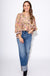 This vintage-inspired top combines timeless floral patterns with bold leopard accents on the band and hem, creating a unique, eye-catching look. The flattering empire waist and ¾ sleeves offer comfort and style, making it perfect for any occasion. Embrace effortless elegance with this versatile piece in a warm camel tone.