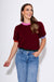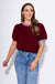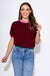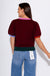 Where cozy meets couture. Wrap yourself in this luxuriously soft burgundy sweater, elevated by playful pops of color—deep green along the hem, gentle pink at the neckline, and delicate lilac on the sleeve edges. Its lightweight knit and short sleeves make it perfect for layering or standing out solo, bringing effortless sophistication to your everyday wardrobe.
