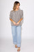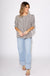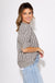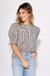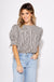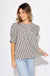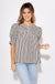 Sharp lines meet soft details in this striking black stripe pattern pullover top. With structured short sleeves, a round neckline, and button-front closure, it blends crisp tailoring with feminine flair.