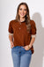 The Ruffle Stripe Knit Top in Brown