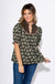 Elegant and effortlessly charming, this olive floral top features delicate blooms paired with short puff sleeves finished with elastic cuffs for a gentle, voluminous shape. A contrasting striped ruffle band adds playful texture, while the brown background V-neck yoke brings depth and sophistication. Lightweight and breathable, this top is a perfect blend of feminine detail and modern design.
