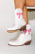 The Minnie Pearl adds a pop of pink to your ensemble with its scalloped collar and pull straps that make it easy to slip on and go. The pink trim creates a flattering silhouette, making this shorty boot a must-have.