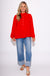 Sophisticated yet easy to wear, this long sleeve button-up top in bright tomato red brings refined texture and timeless charm to your wardrobe. Crafted from a softly textured solid fabric, it features delicate ruffle accents along the button placket and a romantic ruffled mock neckline. Whether styled for work or dressed up for dinner, this versatile piece adds a polished touch to any outfit.