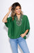 Introducing The Roar Line Top in Fern, a versatile and fashionable dolman top that will elevate your wardrobe. This solid top features a leopard print accented caftan-inspired split neck placket, adding a touch of boldness to any outfit. The elasticated sleeve band and lightweight material make it comfortable to wear all day. Embrace your wild side with this must-have piece.