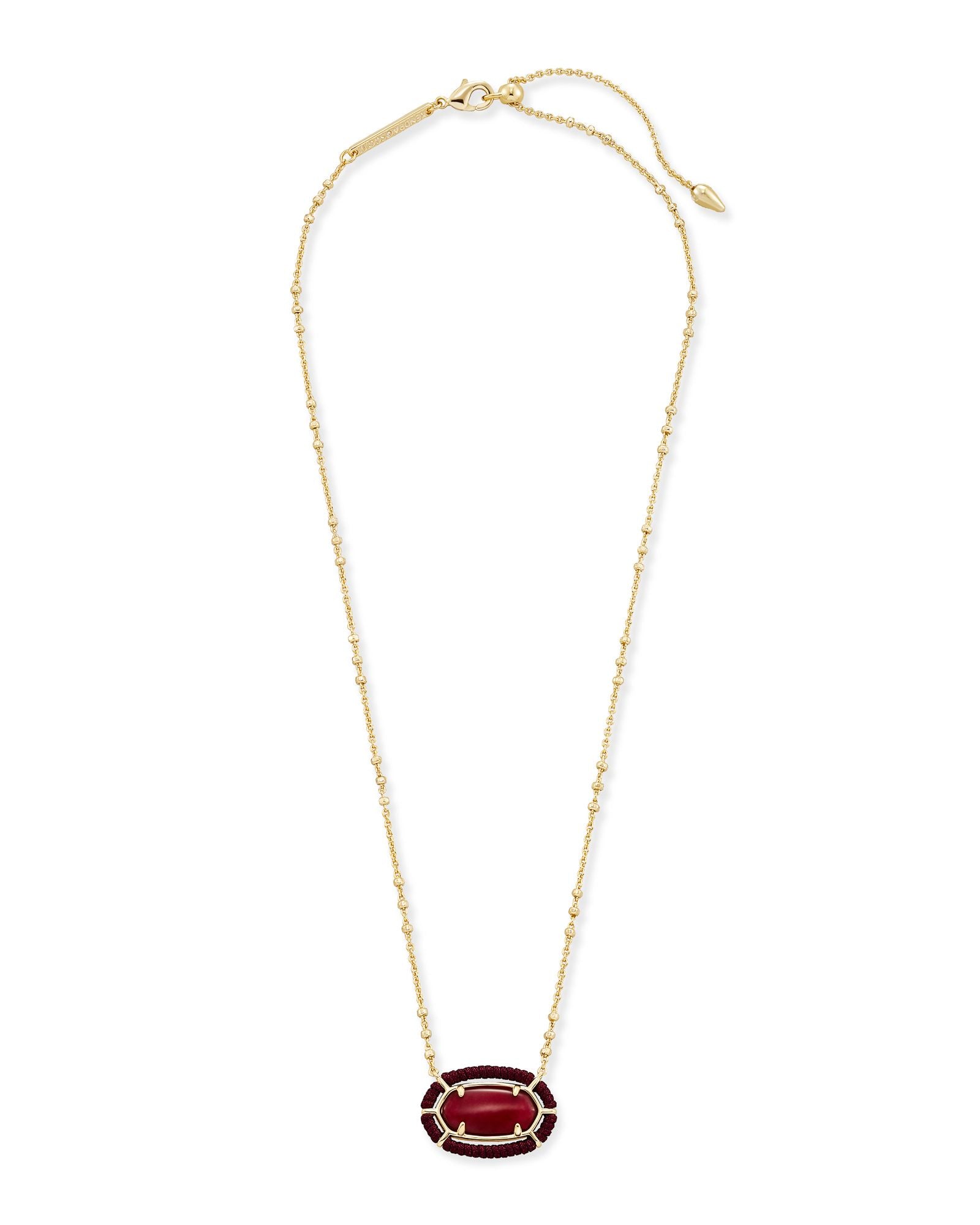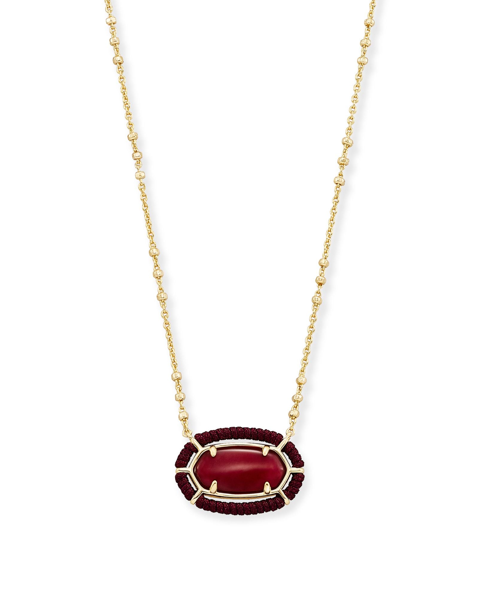 Details: The only thing we love more than a classic is a classic with a fresh, modern twist! Hand wrapped with a tonal thread to add a playful pop of personality to your look, the Threaded Elisa Gold Pendant Necklace in Burgundy Illusion is our #1 best seller featuring our signature stones and a handcrafted touch of threaded texture.