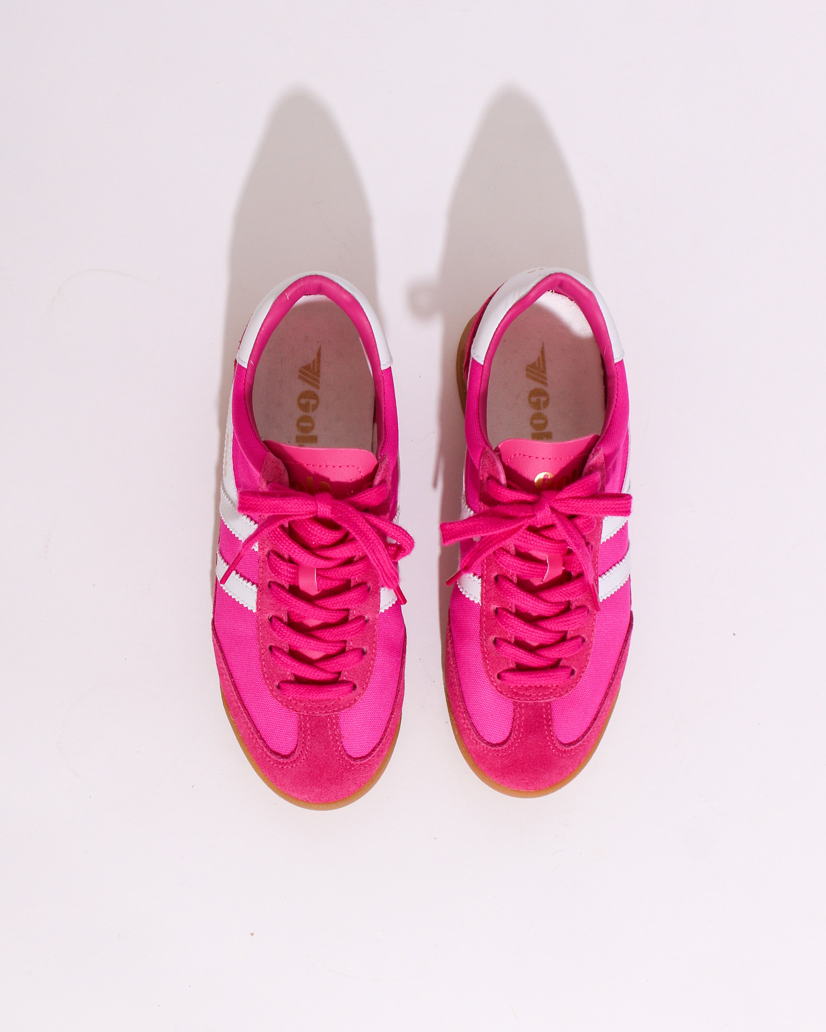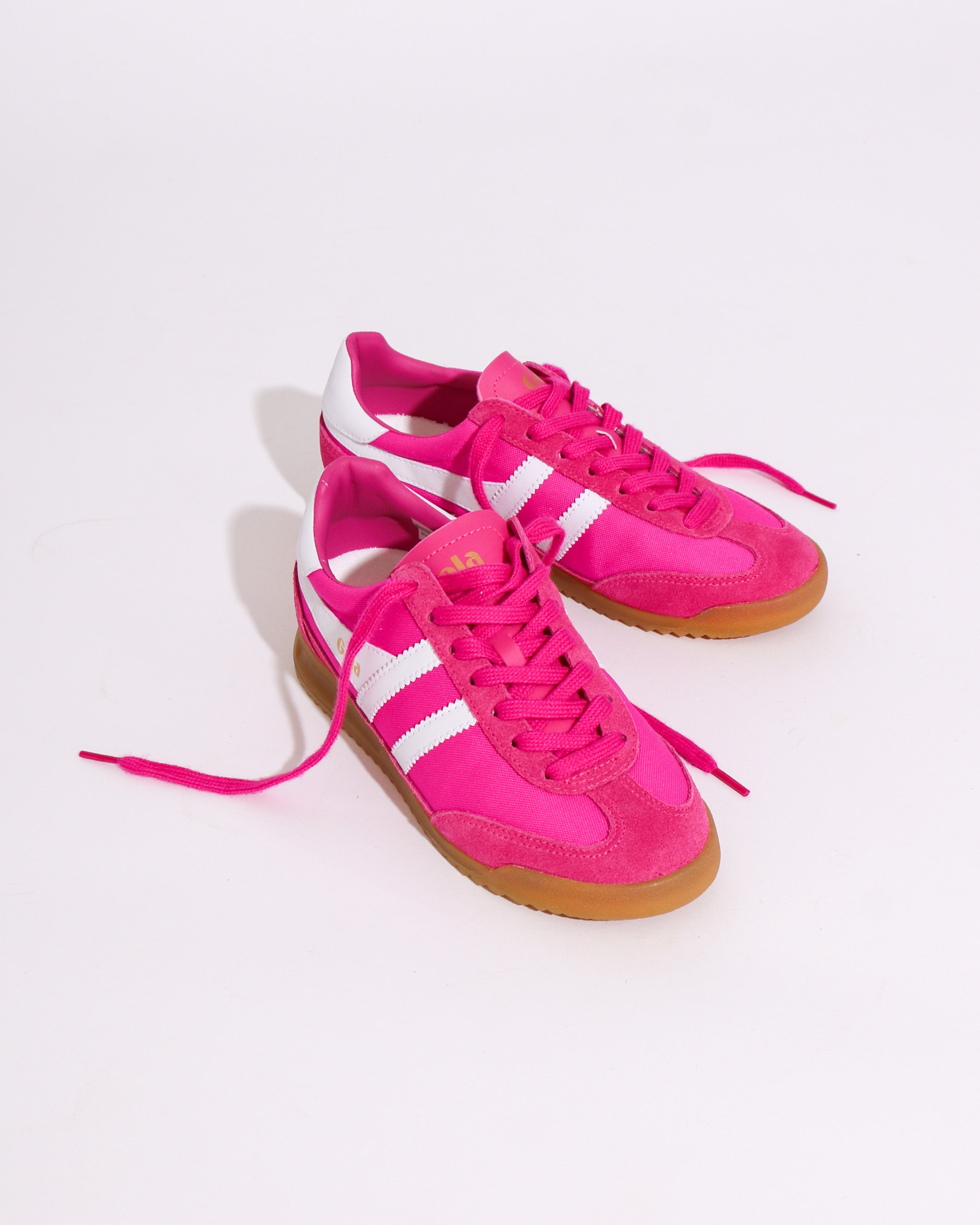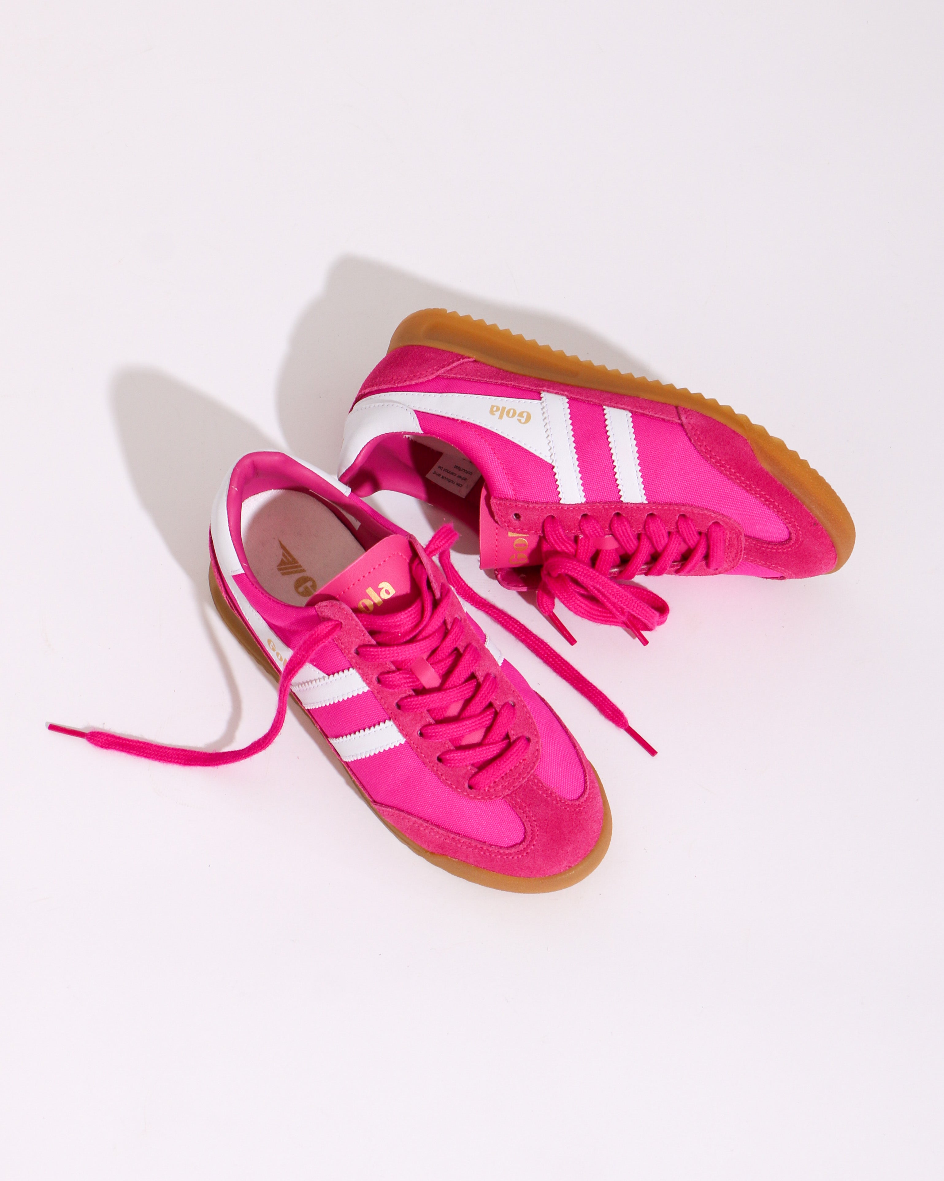 Gola Tornado for women features a heavy weave nylon upper complemented with matching suede trims to the toe, heel and lace facing and contrasted with a Gola wingflash side trim with sawtooth edges. The result is a Gola trainer beaming with style and nostalgia.