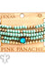 This stretch bracelet set has five strands of turquoise color and gold round beads with a 10mm laguna delite Austrian crystal drop.
