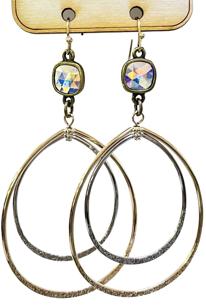 8mm AB Austrian crystal cushion cut connector on gold and silver double teardrop earring