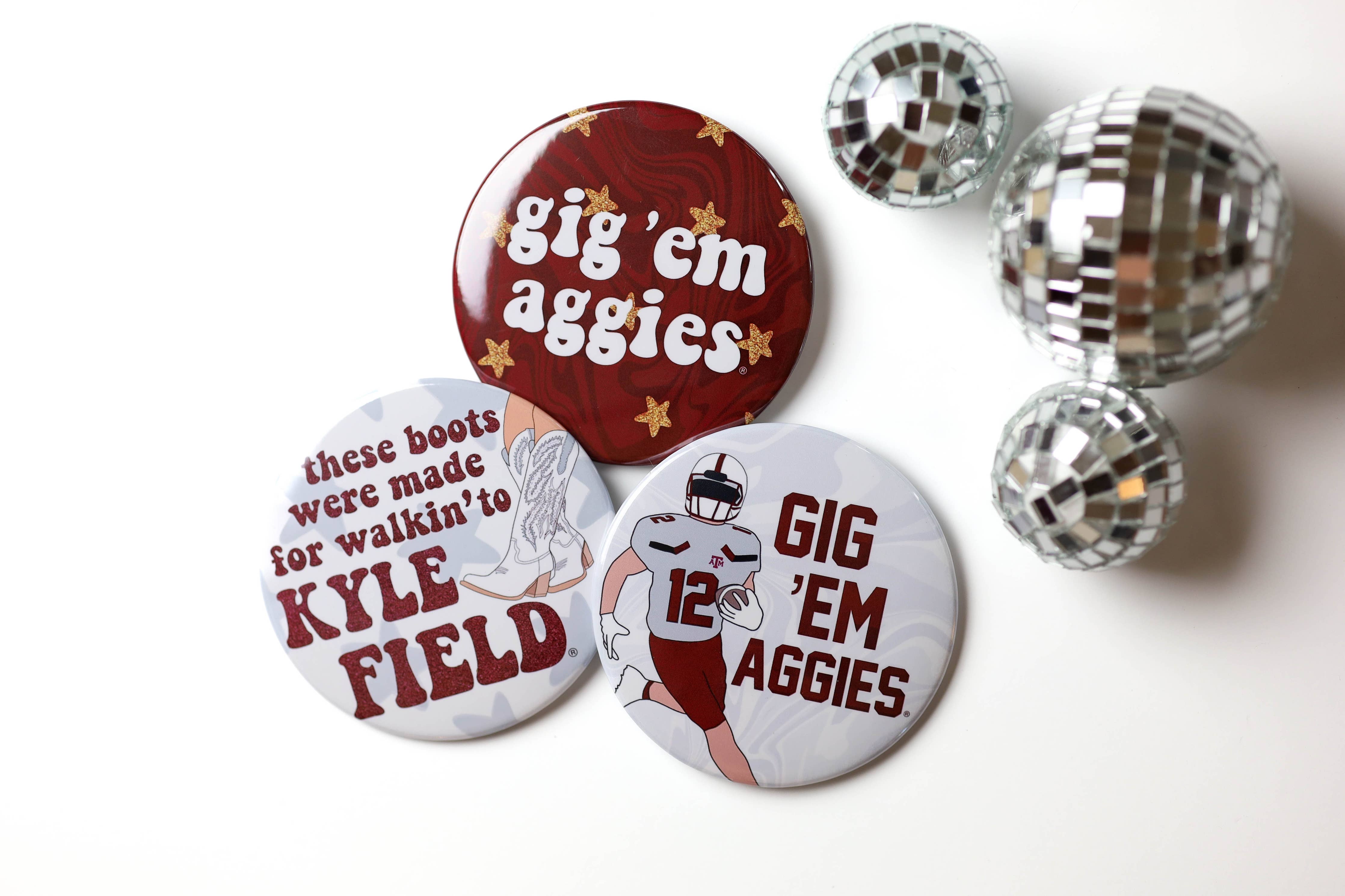 3 INCH TEXAS A&M TAILGATE PINBACK BUTTONS